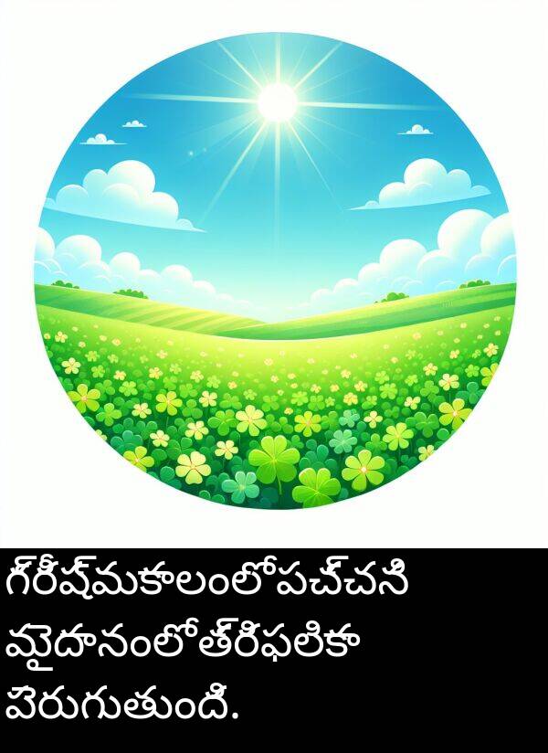 “పచ్చని”తో చిన్న, సులభమైన వాక్యాలు — పిల్లలు/విద్యార్థులకు అనుకూలం; సాధారణ పదబంధాలు మరియు సంబంధిత పదాలు కూడా ఉన్నాయి.