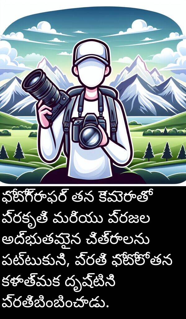 ఫోటోగ్రాఫర్ తన కెమెరాతో ప్రకృతి మరియు ప్రజల అద్భుతమైన చిత్రాలను పట్టుకుని, ప్రతి ఫోటోలో తన కళాత్మక దృష్టిని ప్రతిబింబించాడు.